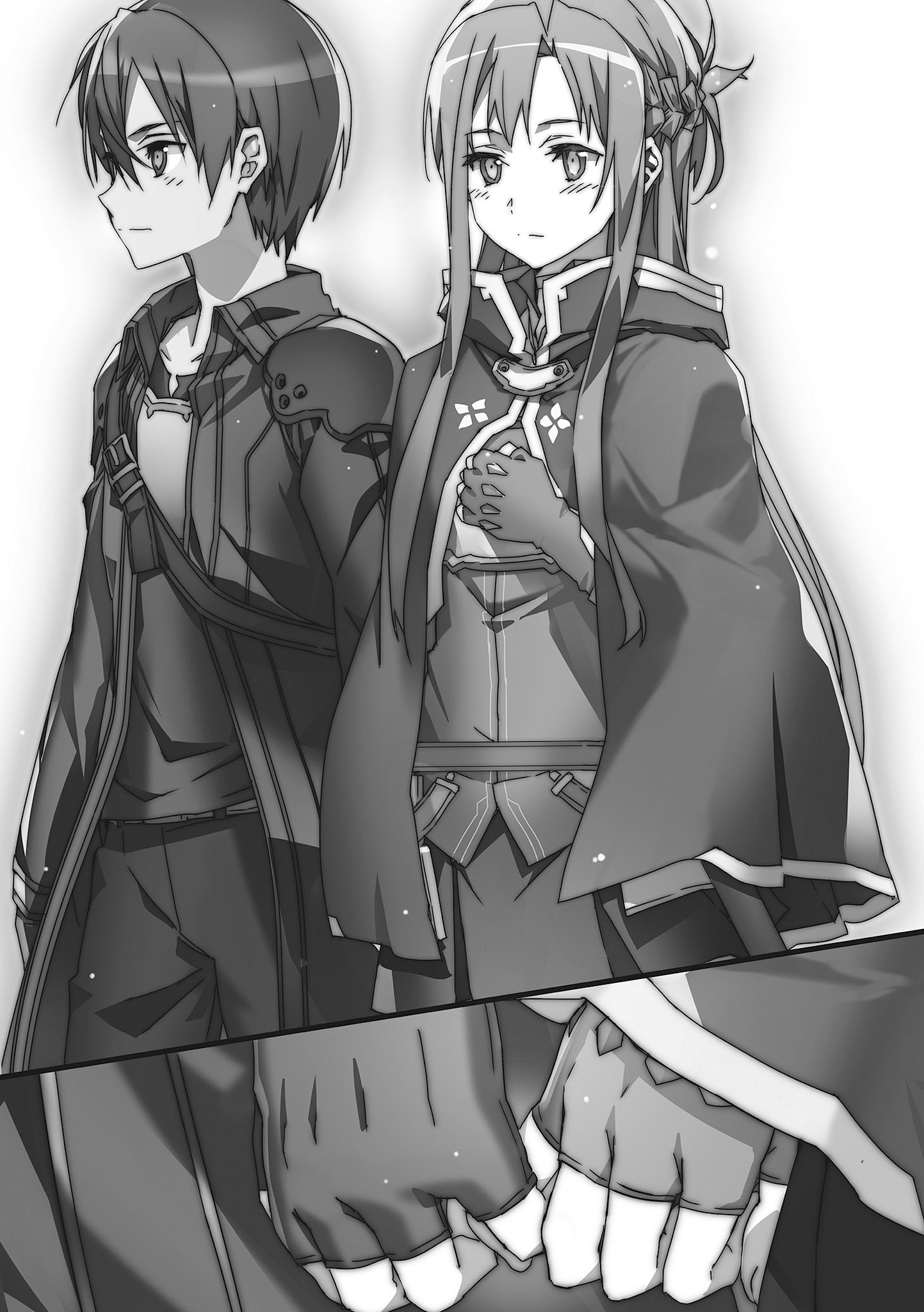 Aliviado, me relajé y dejé mi mirada fija en los ojos marrones de Asuna. Instantáneamente, sentí que algo dejaba mi cuerpo y sabía que ahora ya estaba al límite de mi consciencia.